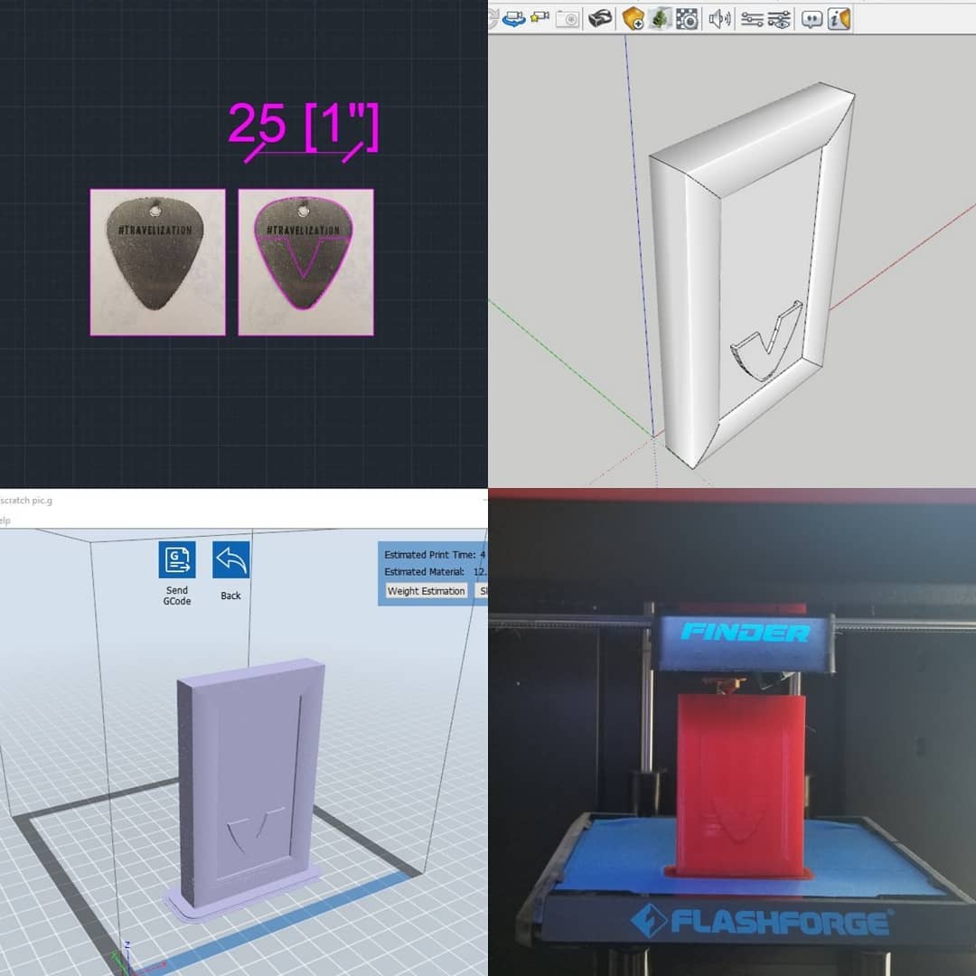 Printed a holder for our scratch-off-map's pick. Made in SketchUp and printed on FlashForge Finder.